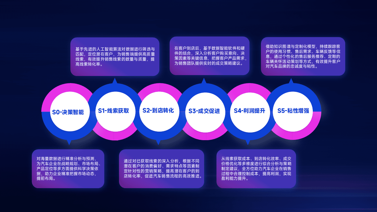 通过拓宽潜在客户来源、、、优化线索分配并提高到店转化率,,,,以增强销售效率。。。。同时,,,利用线索数据不断优化分析模型,,有效提升转化率,,扩大营销影响力。。。